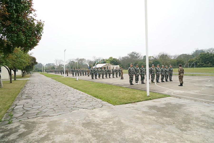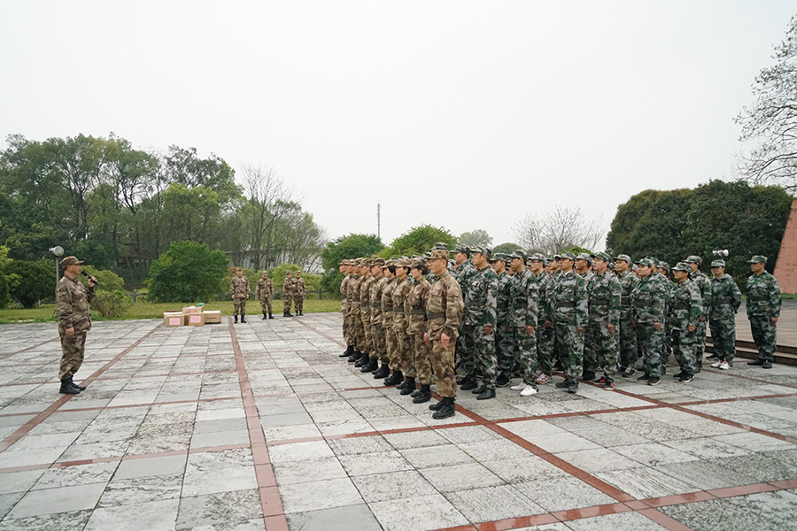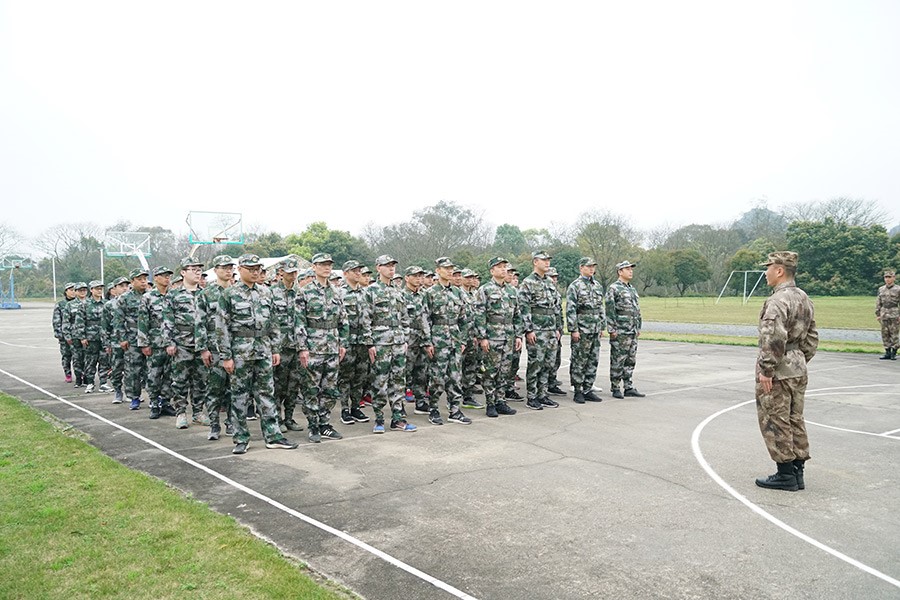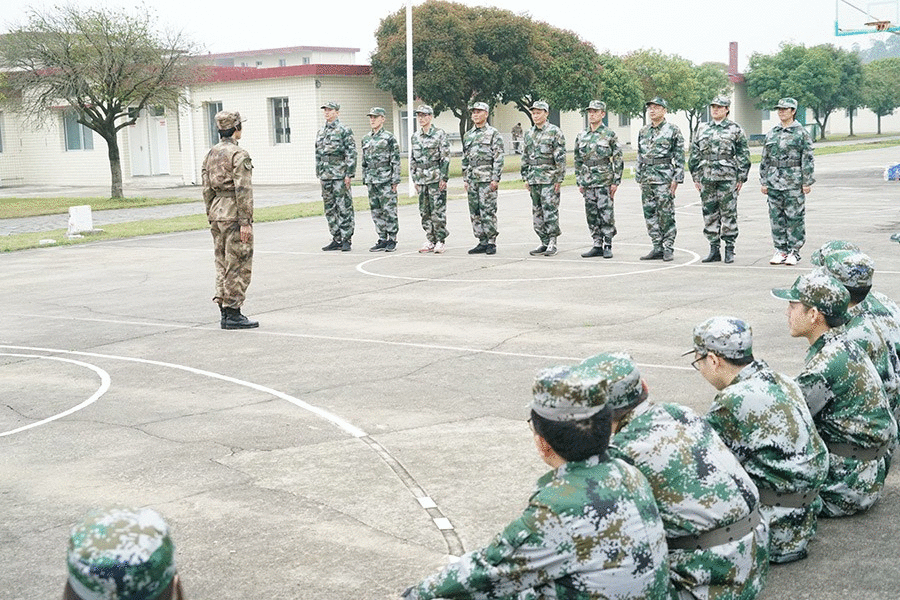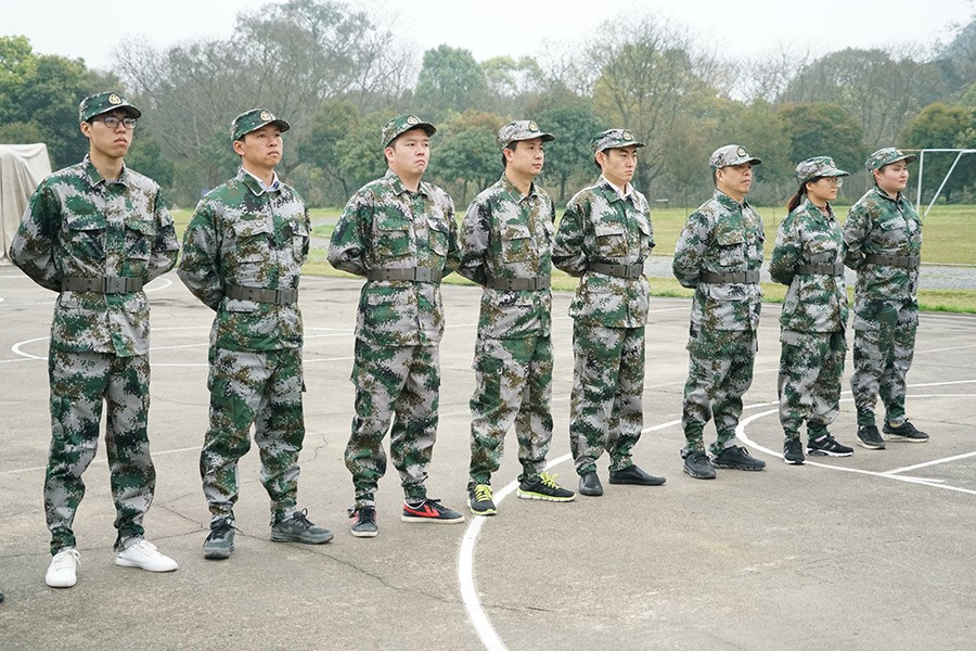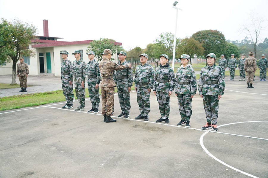 抵達(dá)訓(xùn)練場(chǎng)地后,全體人員換上迷彩服,拉開了一天封閉軍訓(xùn)的序幕。