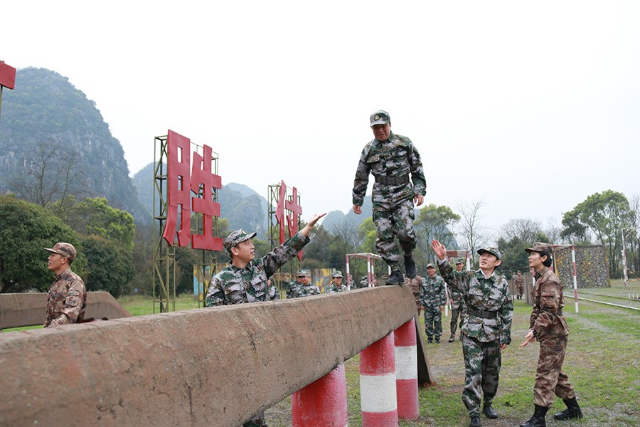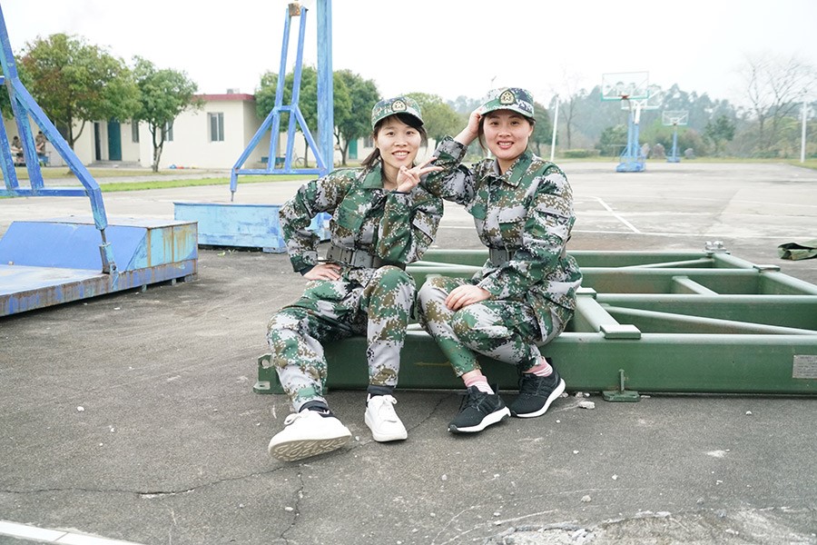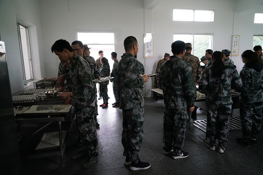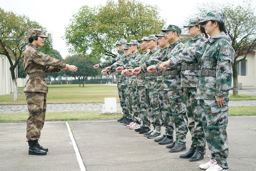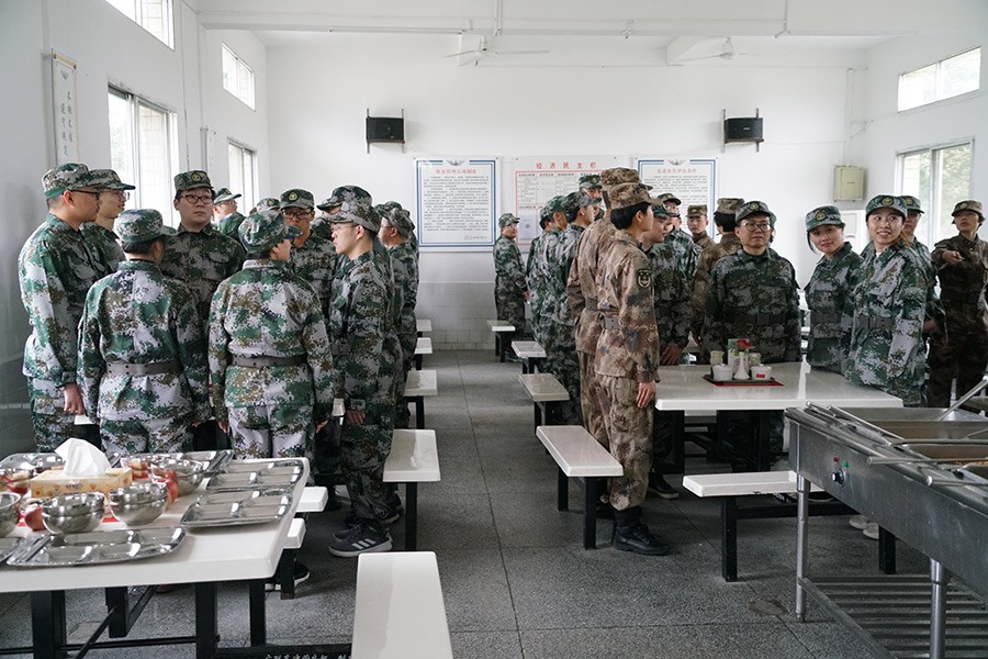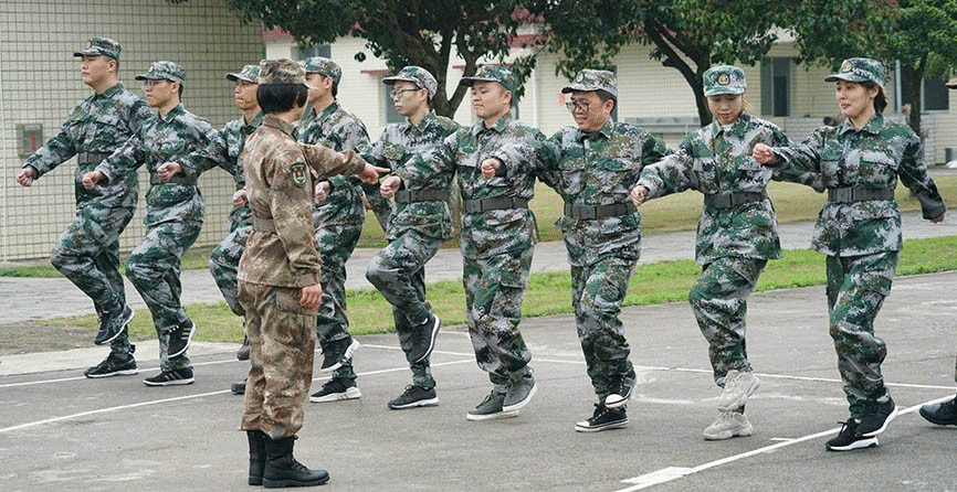 抵達(dá)訓(xùn)練場(chǎng)地后,全體人員換上迷彩服,拉開了一天封閉軍訓(xùn)的序幕。