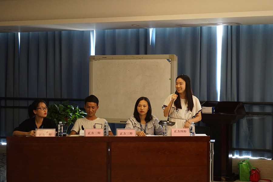 初賽:青年成才的關(guān)鍵是自身努力/青年成才的關(guān)鍵是外部機遇。對陣雙方:正方(顧夢潔、曾威、陳茜、曾曼)對陣反方(付緋虹、蔣磊、黃艷、農(nóng)瓊)。