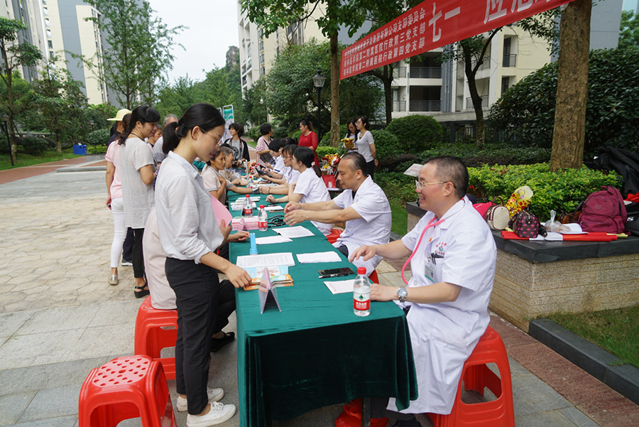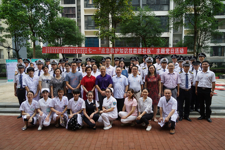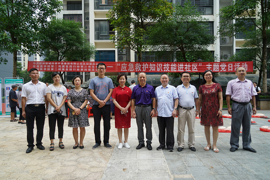 為充分發(fā)揮黨員志愿者的先鋒模范帶頭作用,增強轄區(qū)居民對健康的關(guān)注,加強對夏季防病的健康意識,6月29日(周六)上午,新城投資集團黨支部和桂林醫(yī)學院第二附屬醫(yī)院行政第三、第四黨支部在桂林市臨桂區(qū)新城國奧小區(qū)舉行“應急救護及健康知識進社區(qū)”主題黨日活動。