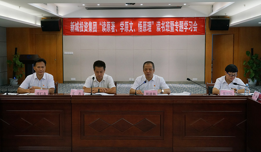 10月8日至10月10日,新城投資集團(tuán)舉辦黨員領(lǐng)導(dǎo)班子 “讀原著、學(xué)原文、悟原理”讀書(shū)班暨專題學(xué)習(xí)會(huì),新區(qū)工委委員、管委會(huì)副主任文杰出席并做重點(diǎn)發(fā)言,集團(tuán)黨總支籌備工作領(lǐng)導(dǎo)小組組長(zhǎng)、主題教育領(lǐng)導(dǎo)小組組長(zhǎng)、董事長(zhǎng)周道林作開(kāi)班動(dòng)員講話,新區(qū)工委主題教育巡回指導(dǎo)組成員李鋒、謝琨到會(huì)指導(dǎo)。集團(tuán)黨總支籌備工作領(lǐng)導(dǎo)小組副組長(zhǎng)、主題教育領(lǐng)導(dǎo)小組副組長(zhǎng)、副總經(jīng)理鄧仁友主持學(xué)習(xí)會(huì)。學(xué)習(xí)會(huì)以原原本本學(xué)原著為主,每位領(lǐng)導(dǎo)班子成員輪流領(lǐng)學(xué)。