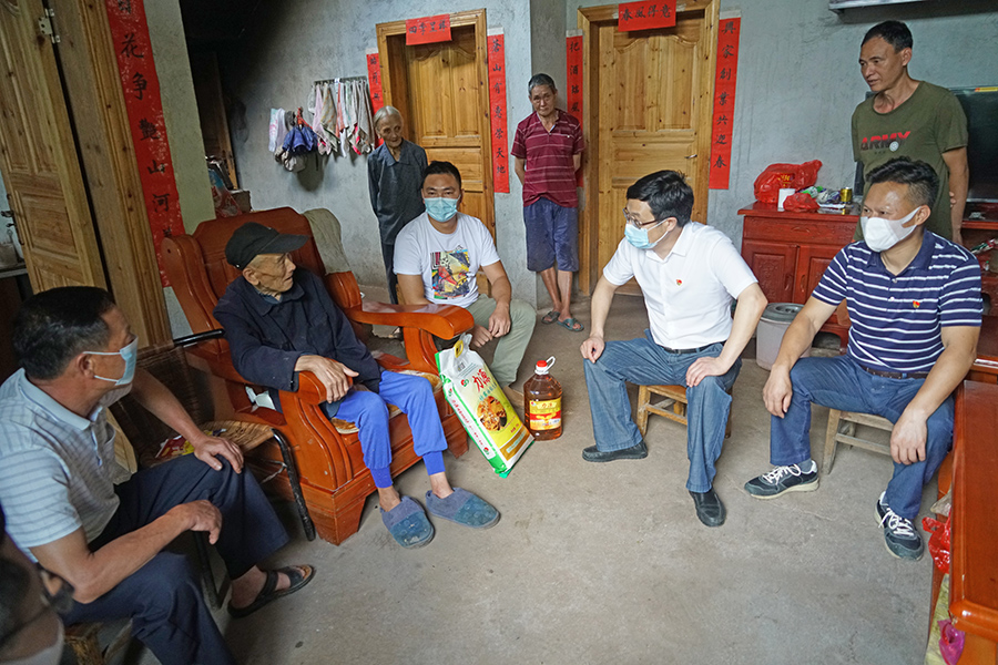 在宿棠村困難黨員周洋生家中,唐標(biāo)明向其一家致以了節(jié)日問候,并送上了慰問金和米、油等慰問品,并了解他的身體健康狀況和生活起居情況,詳細(xì)詢問了他的家庭收入來源及存在困難。有著42年黨齡的周洋生因?yàn)榛加蓄i動(dòng)脈堵塞多年,家庭一直承受著巨大的經(jīng)濟(jì)壓力。唐標(biāo)明勉勵(lì)老黨員平時(shí)要加強(qiáng)鍛煉,對(duì)生活要保持樂觀心態(tài)。