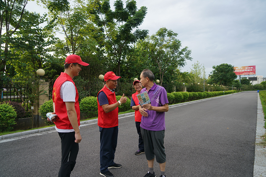 ▲黨員志愿者發(fā)放安全傳單