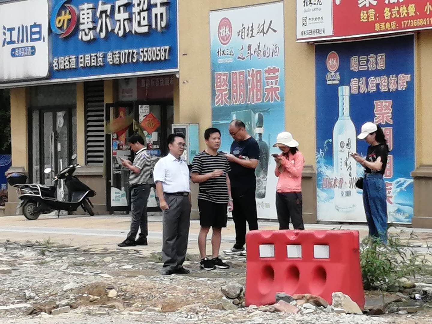 ▲于榮升(左二)、韋新華(右三)現(xiàn)場辦公