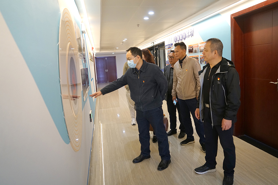 蔣玖明一行觀看集團(tuán)公司黨建宣傳展示,認(rèn)為集團(tuán)公司國企黨建品牌創(chuàng)建工作載體豐富,內(nèi)容扎實(shí),為臨桂新區(qū)黨建品牌創(chuàng)建工作打下良好的基礎(chǔ)。