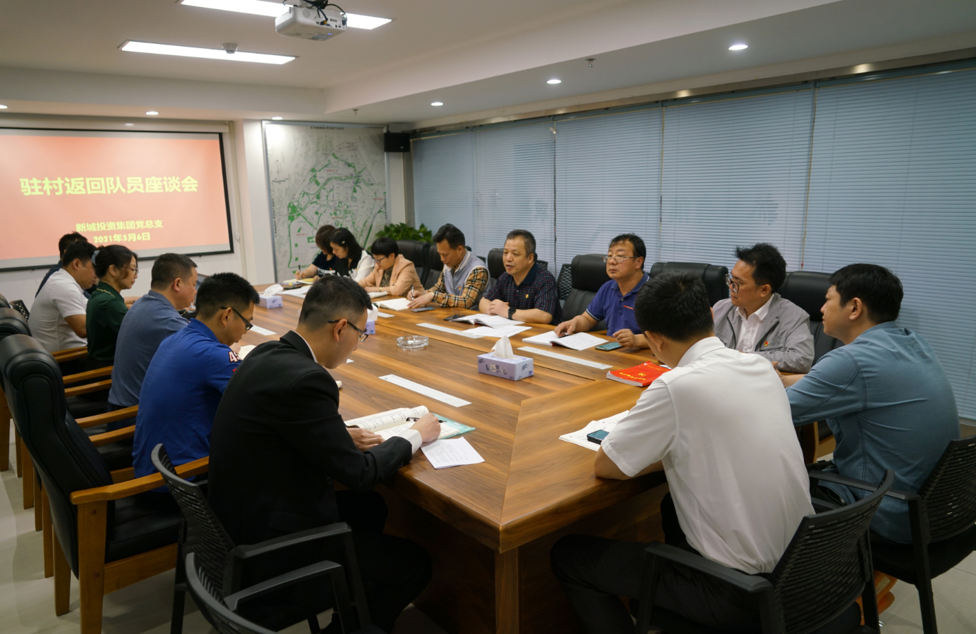5月6日,桂林新城投資集團(tuán)召開駐村返回隊(duì)員座談會(huì)。集團(tuán)黨總支書記、董事長(zhǎng)、總經(jīng)理周道林出席會(huì)議并講話。座談會(huì)由黨總支組織委員、工會(huì)主席譚力源主持。