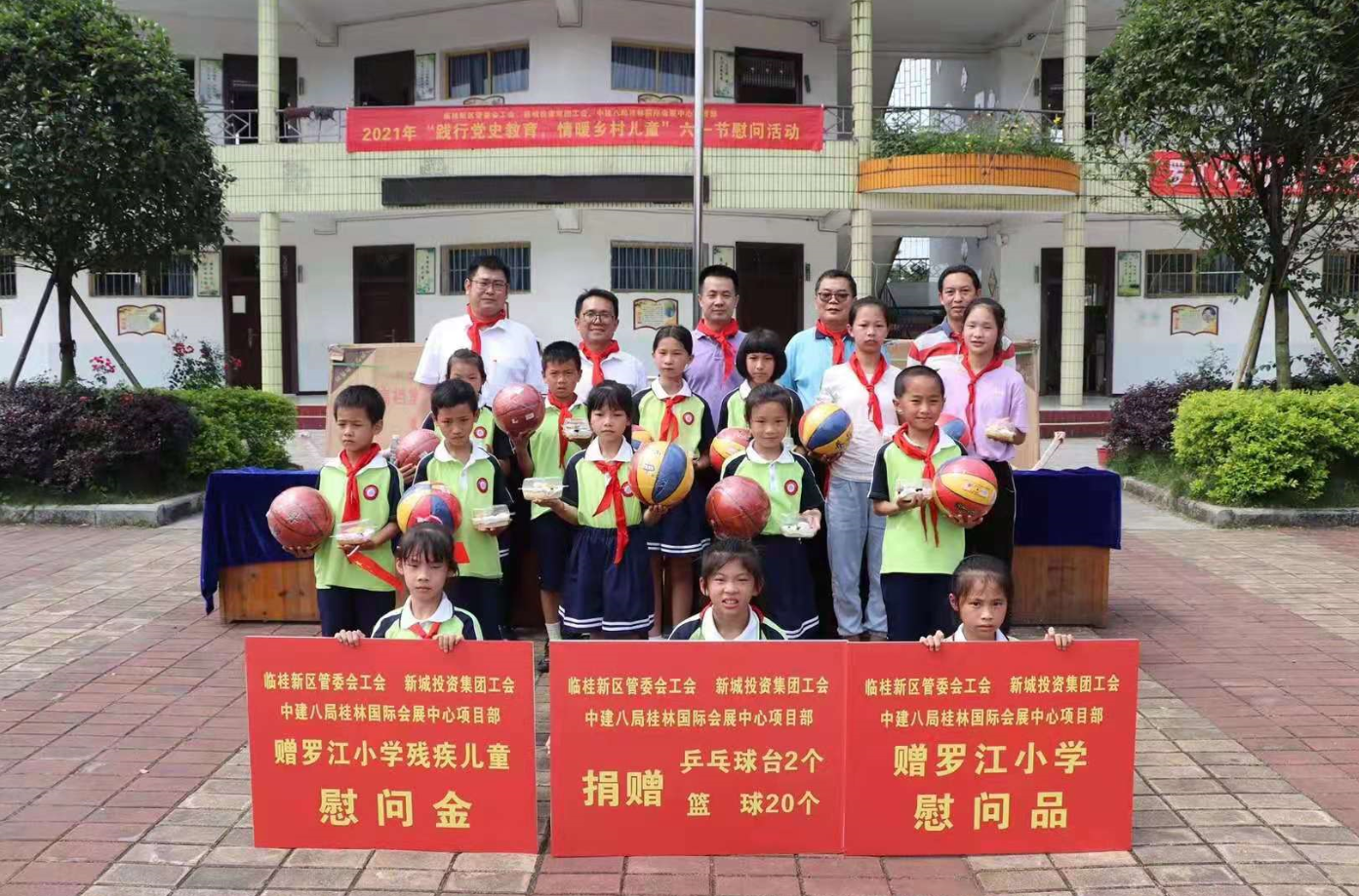 為認(rèn)真貫徹落實(shí)黨史學(xué)習(xí)教育我為群眾辦實(shí)事要求,臨桂新區(qū)管委會(huì)工會(huì)、新城投資集團(tuán)工會(huì)在臨桂區(qū)五通鎮(zhèn)羅江希望小學(xué)開展“踐行黨史教育,情暖鄉(xiāng)村兒童”六一節(jié)前夕慰問活動(dòng),并給孩子們帶來(lái)乒乓球臺(tái)、籃球、書包、文具、食品等物品,給小朋友們送上節(jié)日祝福。