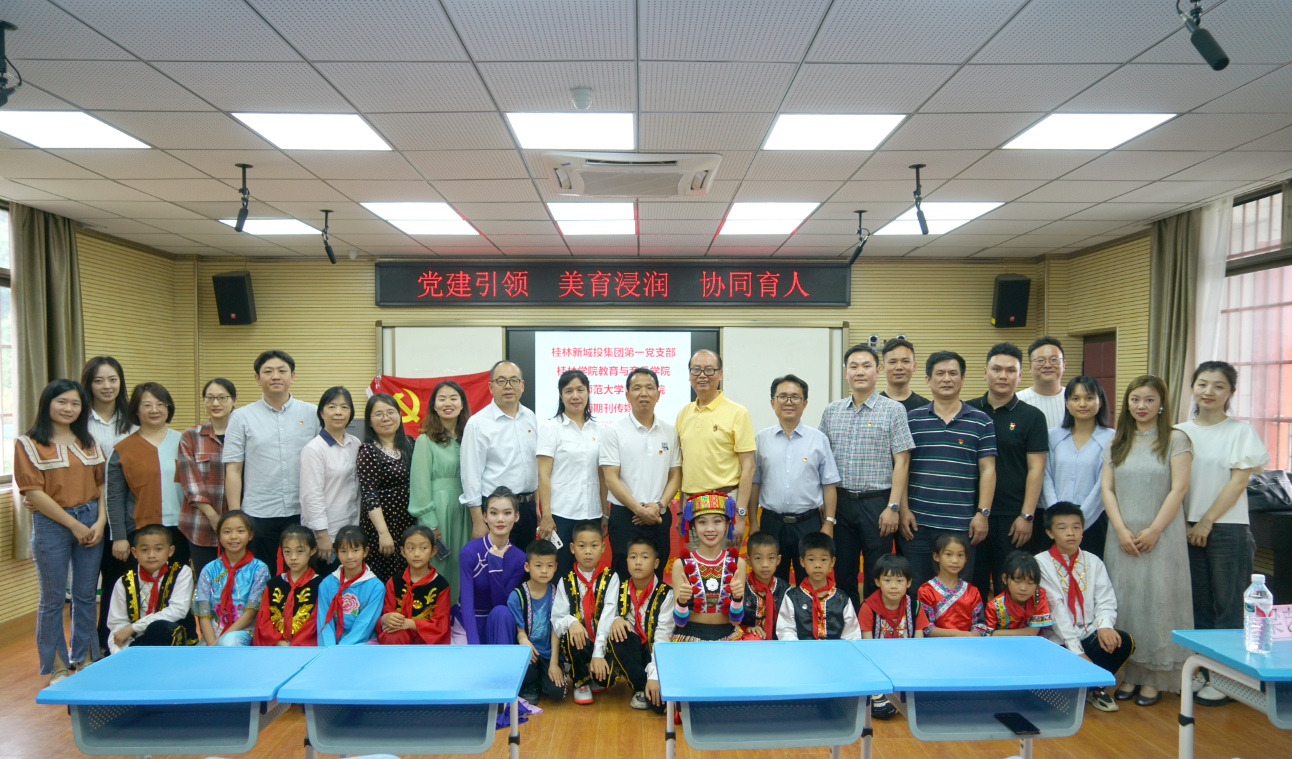 桂林市雁山區(qū)教育局業(yè)務(wù)部主任明耀勤,新城投集團黨總支委員、工會主席譚力源,第一支部書記薛春秀,桂林學(xué)院教育與音樂學(xué)院院長彭超,黨總支書記周杰,草坪回族希望小學(xué)校長唐桂輝,新城投集團第一支部委員,桂林學(xué)院教育與音樂學(xué)院老師等一行參加活動。