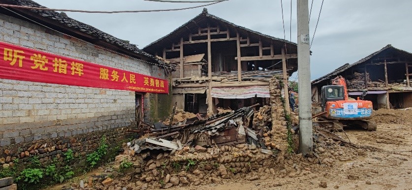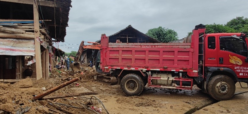 當天下午,譚力源會同臨時聯(lián)合黨支部副書記王偉財帶領成員單位中建八局廣西公司桂林項目部技術人員到達羅江村委受災的4個自然村,開展實地察看,初步形成了損毀、堵塞道路的清理方案。為更好的統(tǒng)籌推進羅江村救災工作,五通鎮(zhèn)黨委在羅江村委辦公地召集相關單位碰頭,并根據(jù)現(xiàn)場情況優(yōu)化調整推進計劃。