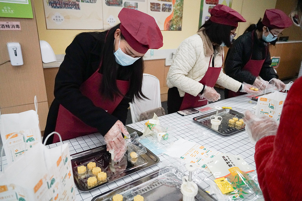 第一項(xiàng)活動(dòng)是動(dòng)手制作桂花糕。桂花糕在桂林已經(jīng)有近百年的歷史,因桂花得名,體現(xiàn)桂林歷史和傳統(tǒng)文化印記。大家手拿模具,在老師的指導(dǎo)下,有模有樣地動(dòng)手制作桂花糕,制作過程中時(shí)而向身邊人討教制作技巧,時(shí)而交換模具制作出不同的樣式,歡聲笑語中一個(gè)個(gè)芳香四溢的桂花糕躍然眼前,女職工們體驗(yàn)到了勞動(dòng)帶來的快樂愉悅。