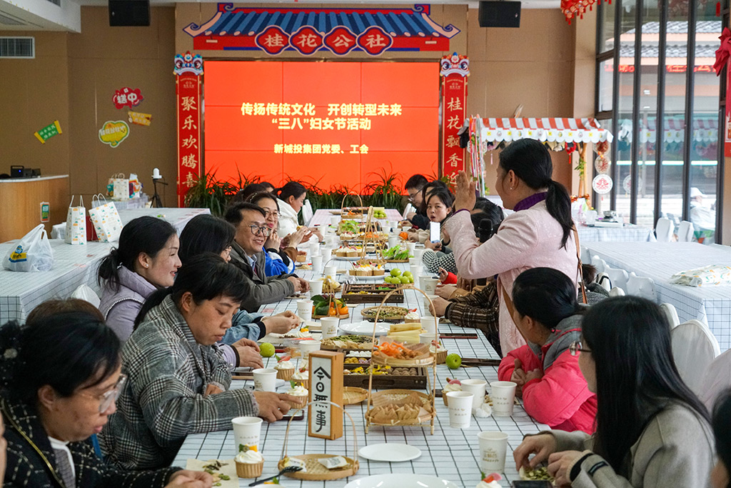 為慶祝第114個(gè)“三八婦女節(jié)”,近日,新城投集團(tuán)分批次組織近百名女職工到桂花公社景區(qū),開展了豐富多彩的“傳揚(yáng)傳統(tǒng)文化 開創(chuàng)轉(zhuǎn)型未來”婦女節(jié)活動(dòng)。