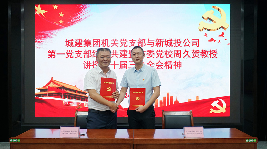 在黨的二十大精神引領(lǐng)下,桂林新城投資開發(fā)集團有限公司(簡稱“新城投集團”)不斷深化黨建工作,積極探索與各級黨組織的深度合作,以黨建引領(lǐng)企業(yè)高質(zhì)量發(fā)展。繼7月19日新城投集團第一、第二黨支部與廣西實體經(jīng)濟服務(wù)員工作隊黨支部正式簽訂《黨建聯(lián)建協(xié)議》,并為結(jié)對共建單位揭牌后,8月28日,新城投集團第一黨支部與城建集團機關(guān)黨支部在桂林市黨群服務(wù)中心再次成功開展結(jié)對共建活動,進一步鞏固和深化了這一合作關(guān)系。