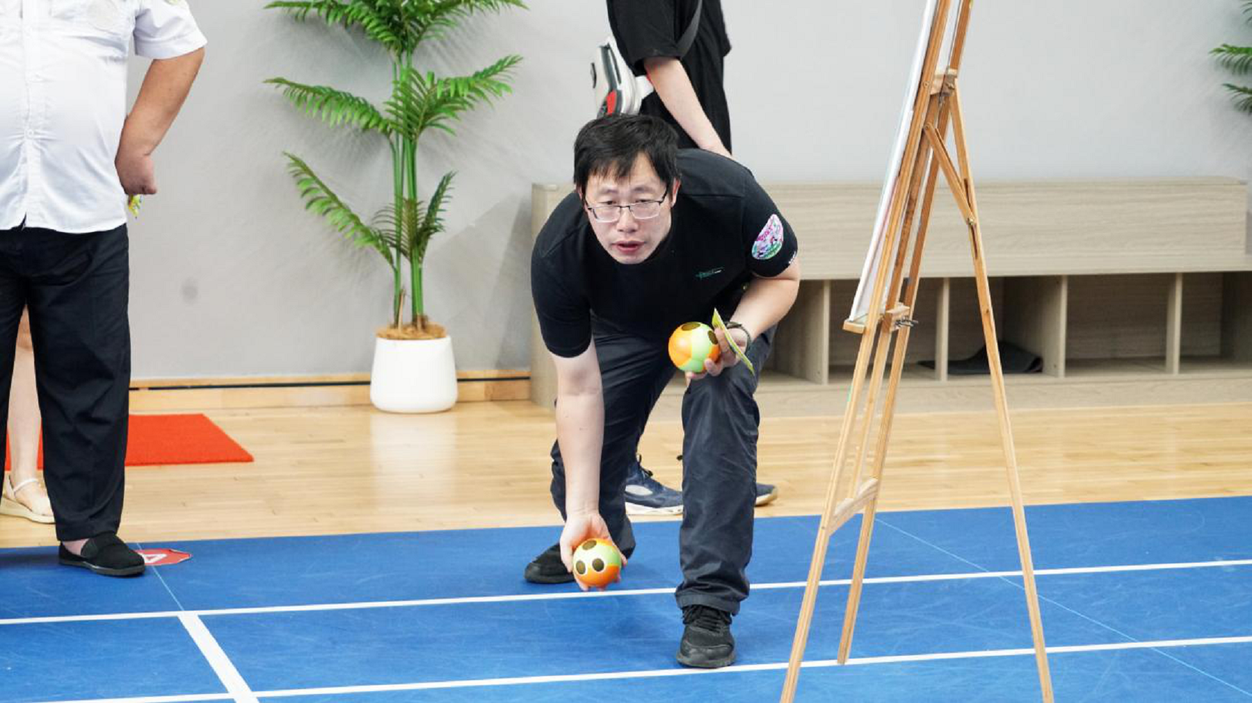 “進(jìn)擊吧西瓜”環(huán)節(jié)中,大家化身“西瓜勇士”,奮力投擲,隨著手中“西瓜球”破空而出,擊倒地面上瓶子,場上歡呼聲彌漫著收獲勝利的喜悅。