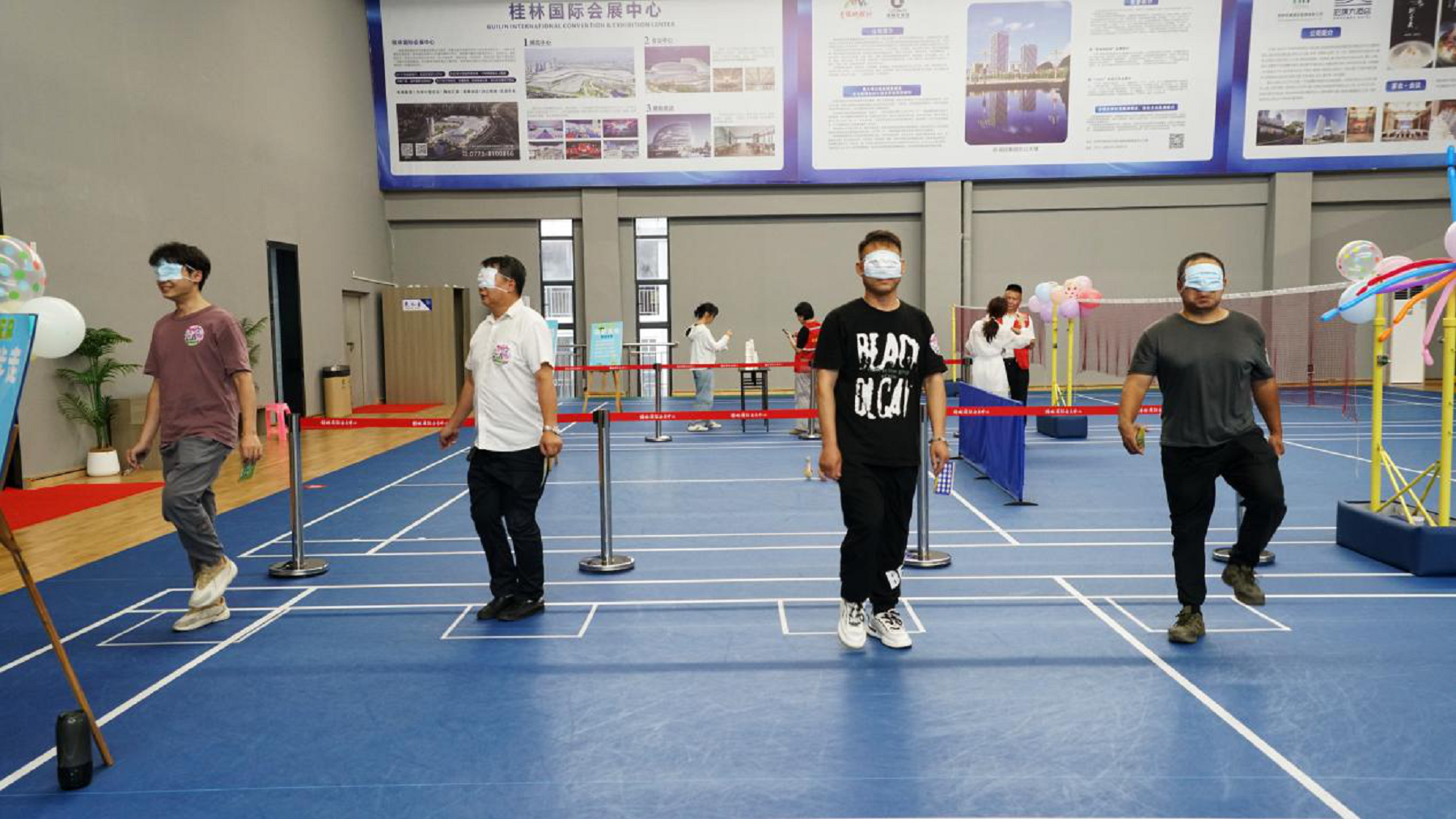 “蒙眼踏步走”則充滿了未知與驚喜,蒙眼的壽星們小心翼翼地原地踏步,時不時的“小插曲”引得現(xiàn)場笑聲不斷。