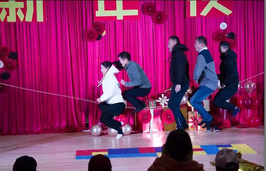 指壓板上跳繩:為了團(tuán)隊(duì)榮譽(yù)跳個指壓板算什么,有本事上刀子啊。(好的,明年考慮一下)