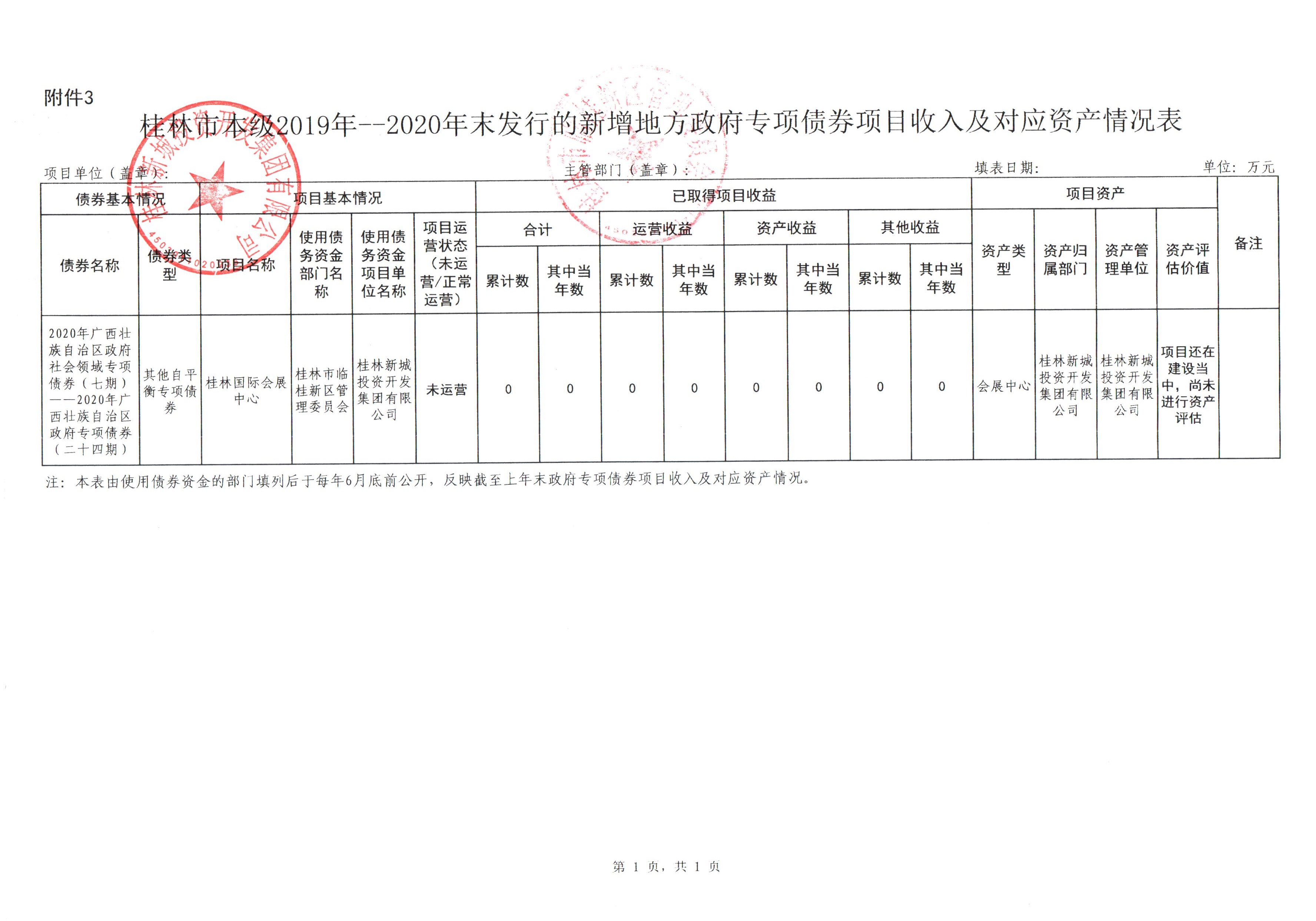 桂林市本級2019年--2020年末發(fā)行的新增地方政府專項債券情況表(臨桂新區(qū))