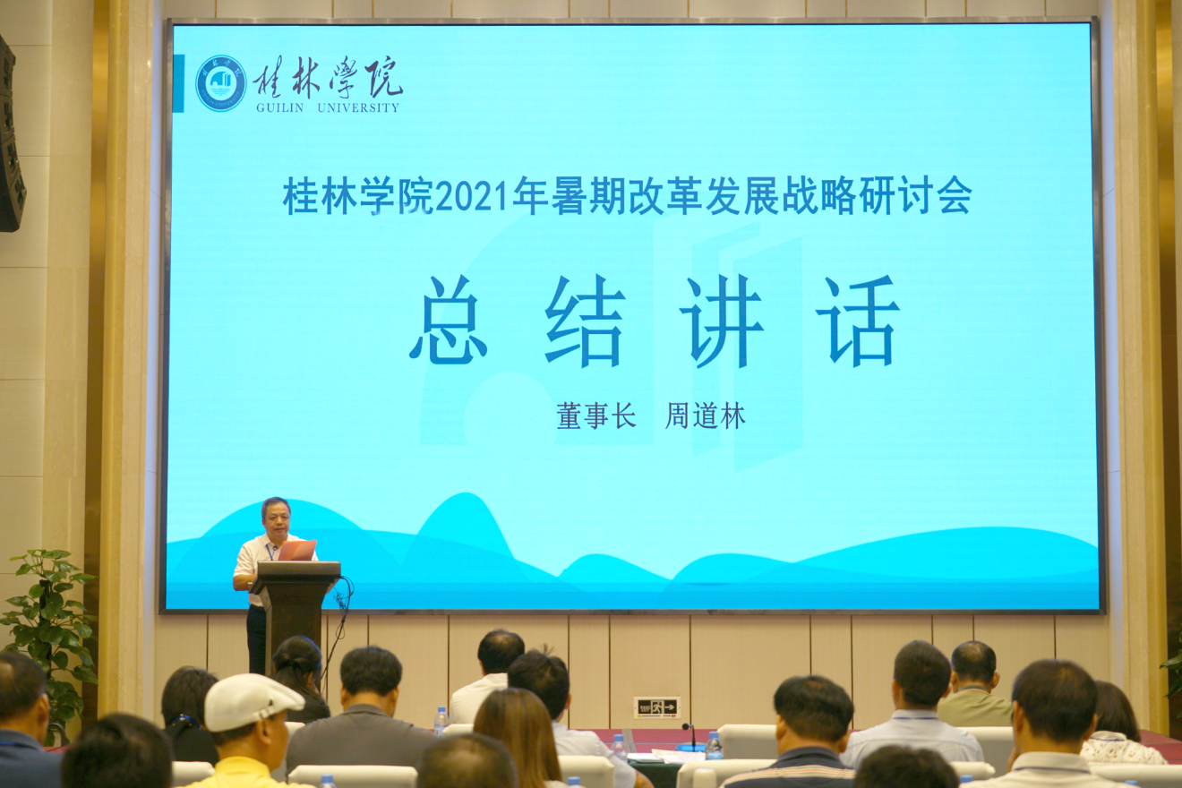 2021年8月26日至27日,桂林學(xué)院2021年暑期改革發(fā)展戰(zhàn)略研討會(huì)在宏謀大酒店召開。新城投資集團(tuán)黨總支書記、董事長(zhǎng)、總經(jīng)理、桂林學(xué)院董事長(zhǎng)周道林?jǐn)y舉辦方領(lǐng)導(dǎo)班子成員參加研討會(huì)。