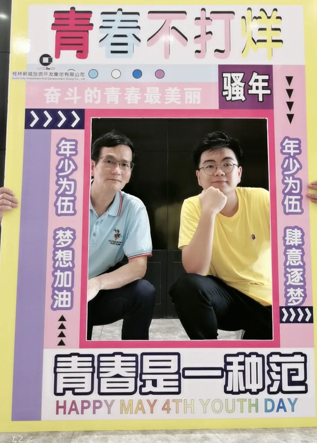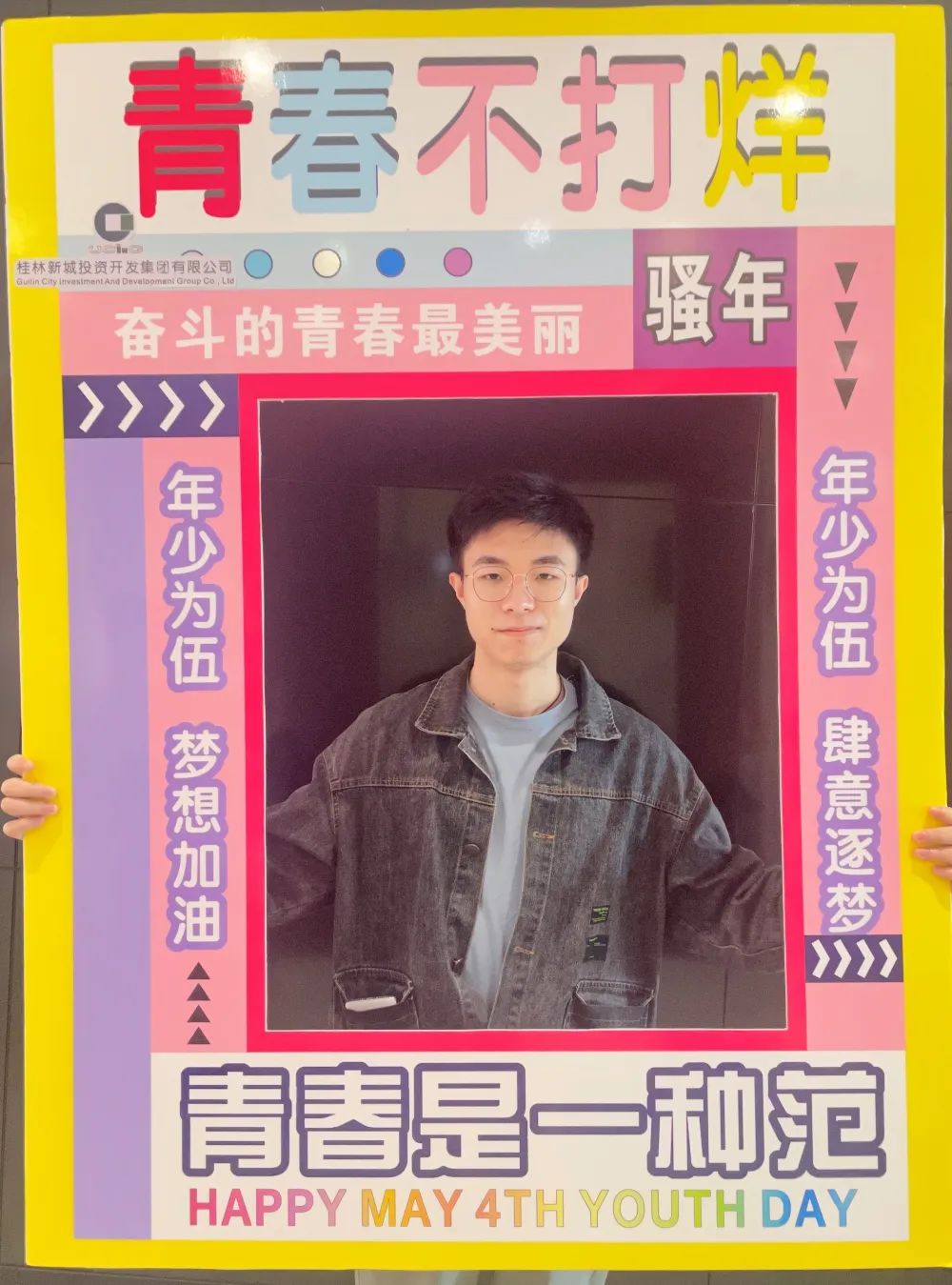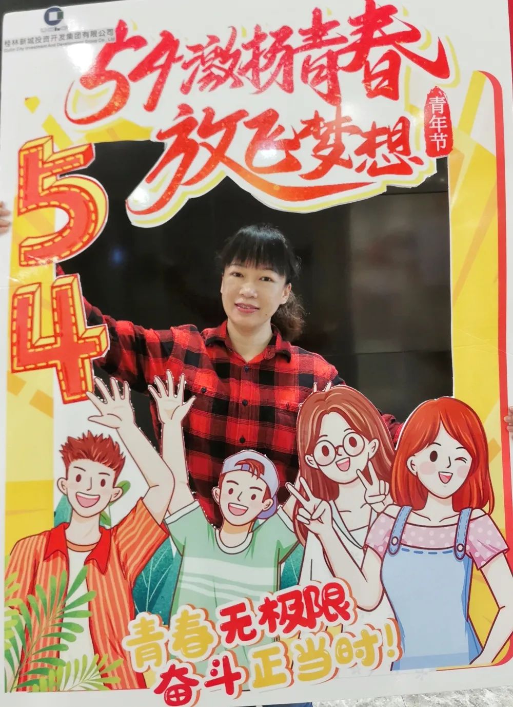 公司一樓大廳,團(tuán)支部布置了“五四主題”畫框打卡活動,熱烈慶祝五四青年節(jié)到來。周道林帶頭打卡,并鼓勵全體員工積極參與拍照打卡活動,渲染喜慶的節(jié)日氛圍。