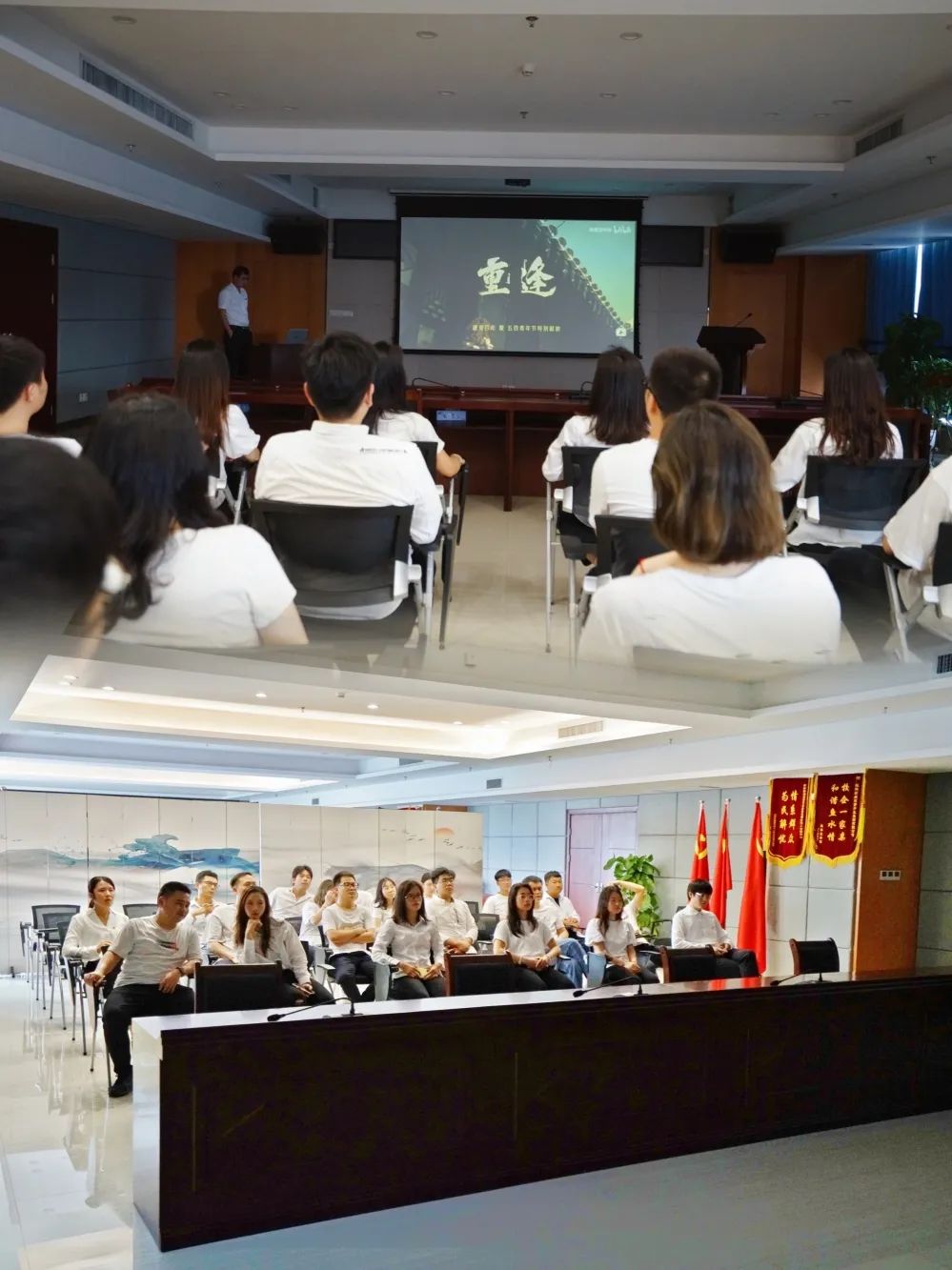 打卡活動結(jié)束后,全體團(tuán)員在十樓會議室集體觀看了《重逢》,影片描述了青年一代不怕苦、不畏難、不懼犧牲,用肩膀扛起如山的責(zé)任,展現(xiàn)了青春激揚的風(fēng)采。團(tuán)員們紛紛表示要傳承“五四運動”的光榮歷史傳統(tǒng),自覺踐行“強(qiáng)國有我,請黨放心”的青春誓言,勇?lián)鷷r代的重任,奮力投身桂林新區(qū)的建設(shè)工作中,在火熱實踐中凝聚強(qiáng)大青春力量。