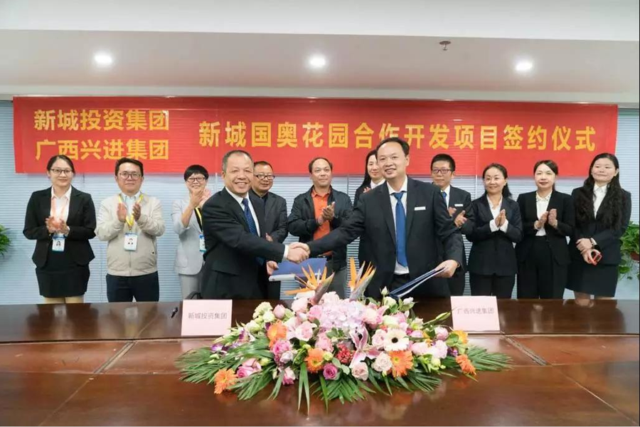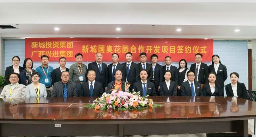 10月11日,桂林新城投資開(kāi)發(fā)集團(tuán)有限公司與廣西興進(jìn)實(shí)業(yè)集團(tuán)有限責(zé)任公司在新城投資集團(tuán)15樓會(huì)議室舉行新城國(guó)奧花園合作開(kāi)發(fā)項(xiàng)目簽約儀式。桂林市臨桂新區(qū)管委會(huì)副主任覃正東出席并見(jiàn)證簽約,桂林新城投資開(kāi)發(fā)集團(tuán)有限公司總裁周道林,廣西興進(jìn)實(shí)業(yè)集團(tuán)有限責(zé)任公司董事長(zhǎng)羅欣分別代表雙方在合作協(xié)議書(shū)上簽字。