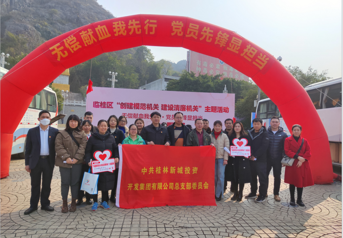 2023年2月28日,臨桂區(qū)直機(jī)關(guān)工委、臨桂區(qū)衛(wèi)健工委在桂林金山廣場(chǎng)開展“無償獻(xiàn)血我先行 黨員先鋒顯擔(dān)當(dāng)”主題活動(dòng),新城投集團(tuán)黨總支雖然已劃轉(zhuǎn)至桂林城鄉(xiāng)建設(shè)控股集團(tuán)有限公司,但是集團(tuán)黨總支始終把講政治講大局放在第一位,在接到通知后,根據(jù)屬地原則立即進(jìn)行了動(dòng)員部署,黨員干部職工紛紛響應(yīng)號(hào)召,組建了一支30余人的獻(xiàn)血隊(duì)伍,是獻(xiàn)血人數(shù)最多的單位之一,得到了主辦單位的肯定與好評(píng)。