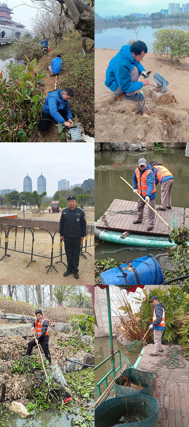 黨員同志帶頭成立工作小組,對山水公園的環(huán)境衛(wèi)生、園林綠化、水系水域、電力系統(tǒng)、照明設施等關鍵領域進行全面、細致的檢查與維護工作,同時,加強山水公園安保力量,加大煙花燃放點的巡查力度,安排專人對煙花組裝區(qū)域實施嚴密守護,并全力配合三大通信運營商及其他相關部門做好用電取電工作,有效保障了活動的順利進行,確?;顒赢斎障蚴忻癯尸F(xiàn)一個安全、舒適的活動環(huán)境。