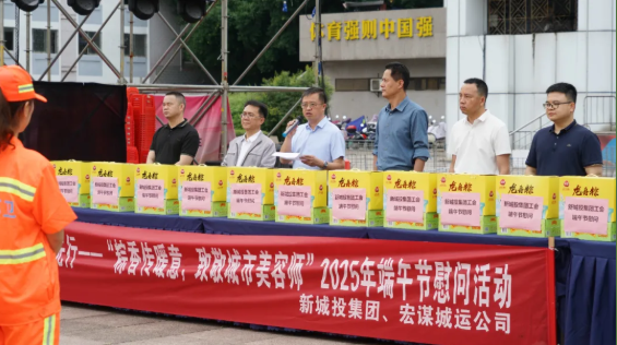 為深入踐行習(xí)近平總書記“以人民為中心”“勞動(dòng)最光榮”的指導(dǎo)思想,切實(shí)把組織關(guān)懷送到基層勞動(dòng)者心坎上,進(jìn)一步提升環(huán)衛(wèi)職工隊(duì)伍的職業(yè)認(rèn)同感和幸福感,2025年5月29日端午節(jié)前夕,新城投集團(tuán)聯(lián)合宏謀城運(yùn)公司在秀峰區(qū)中心廣場舉辦“粽香傳暖意,致敬城市美容師”端午節(jié)慰問活動(dòng)。此次活動(dòng)得到市城管委,秀峰區(qū)政府、城管局、環(huán)衛(wèi)站的大力支持與指導(dǎo)。市城管委黨組成員、副主任蔣毅出席活動(dòng)。受新城投集團(tuán)黨委書記、董事長朱毅委托,黨委副書記、紀(jì)委書記、工會(huì)主席譚力源代表集團(tuán)黨委、領(lǐng)導(dǎo)班子及全體職工,向奮戰(zhàn)在環(huán)衛(wèi)一線的干部職工致以節(jié)日問候。